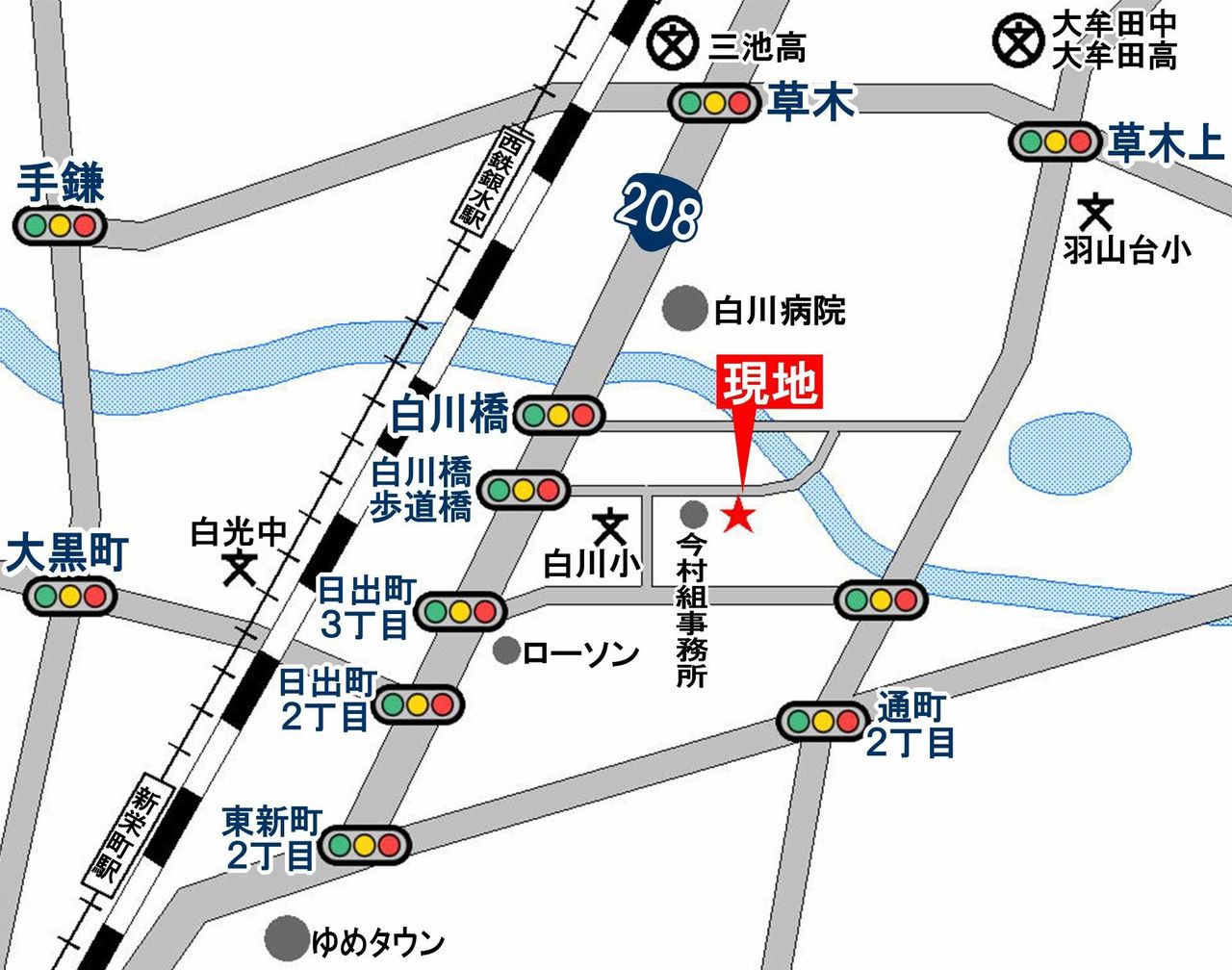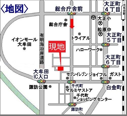 新宿泊棟の地図(イシンホーム大牟田店敷地内)