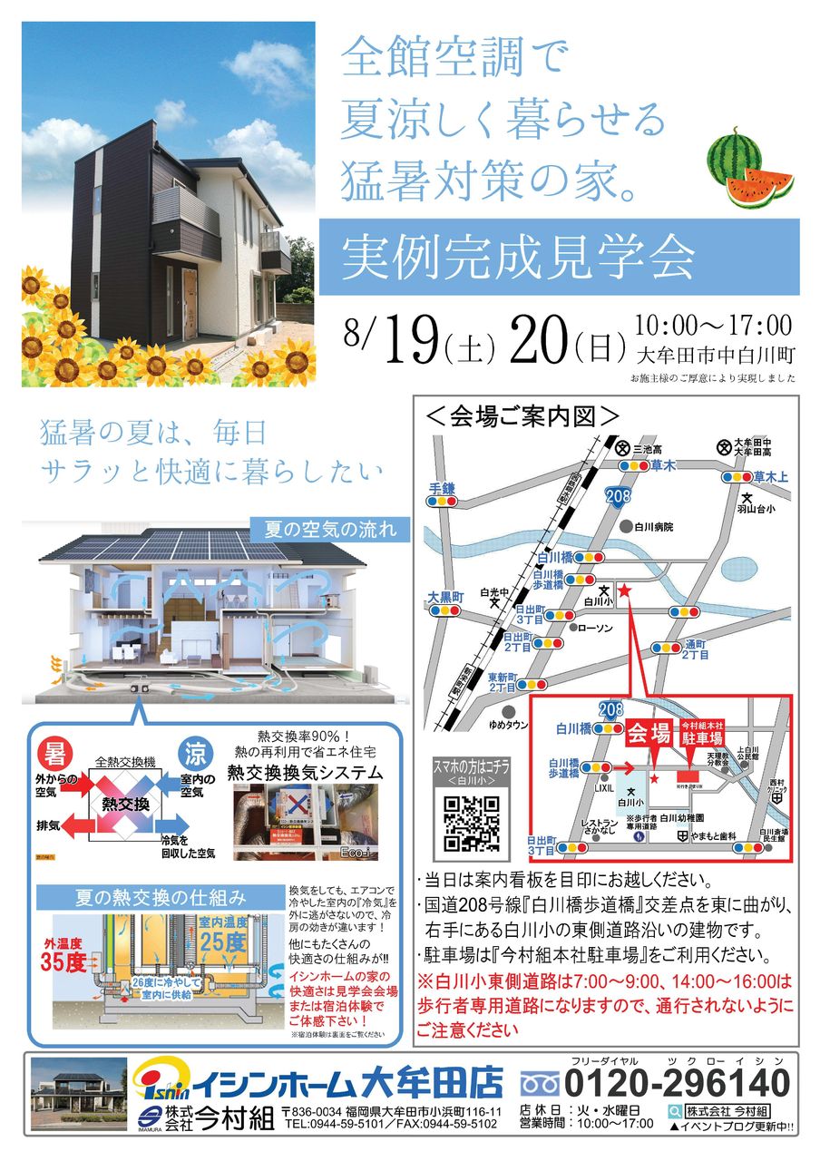 さて、8/19.20に大牟田市中白川町で開催の完成見学会には