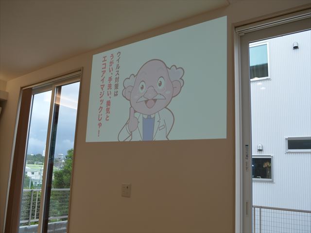 赤い矢印の所はプロジェクターが置いてあり、対面の壁に移せば