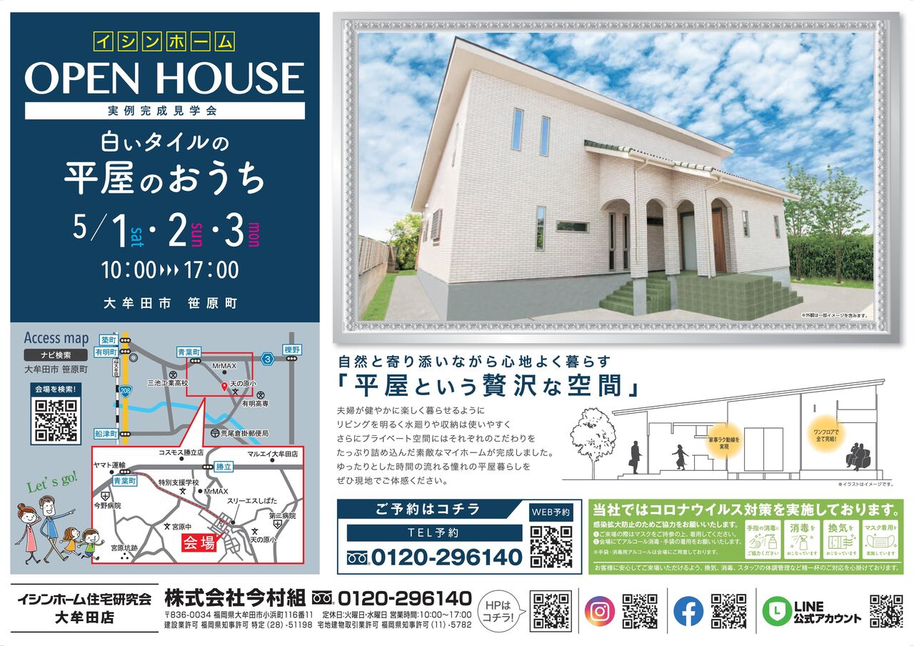 5月の1・2・3日は大牟田市笹原町で完成見学会を開催です。